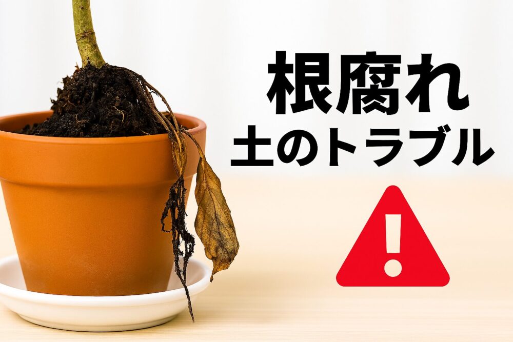 1.土から異臭がする/根元がブヨブヨ | 重度の根腐れ | 【即植え替え】傷んだ根をカットし、クリーンな培養土か無機質な土で植え替える→土と肥料レビュー |
