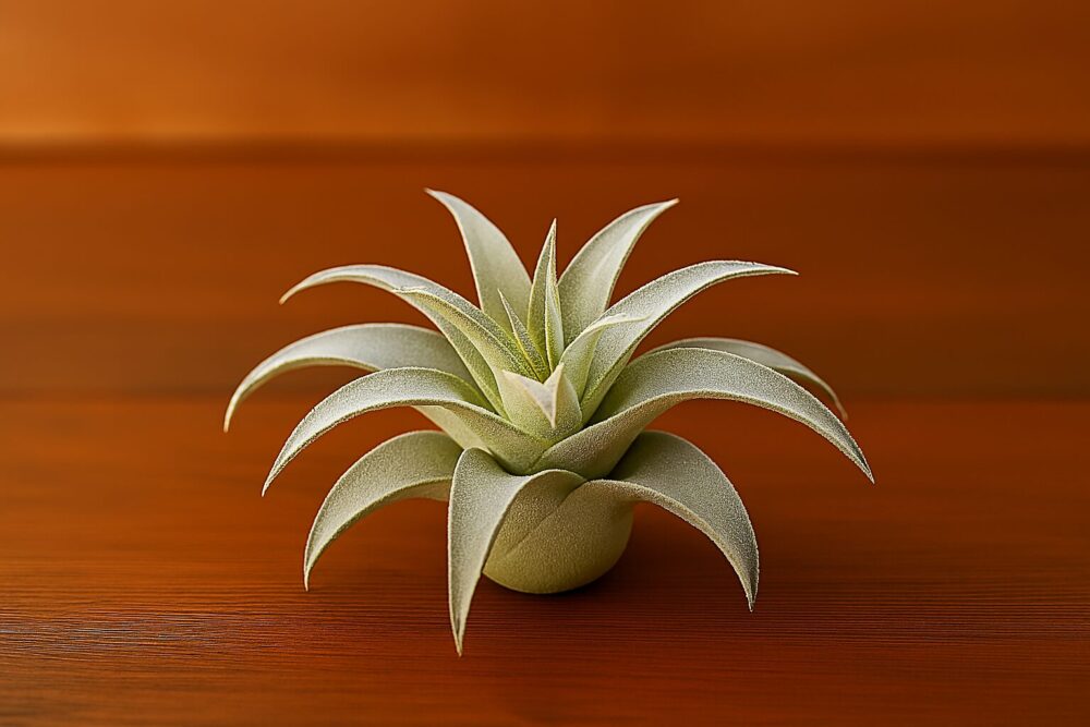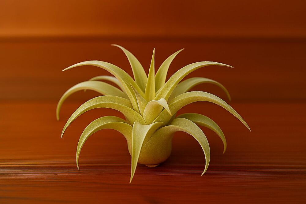- チランジア・オリオナ:糸状の細葉、放射状シルエット、銀葉系で赤い花苞から紫色の花を咲かせます。