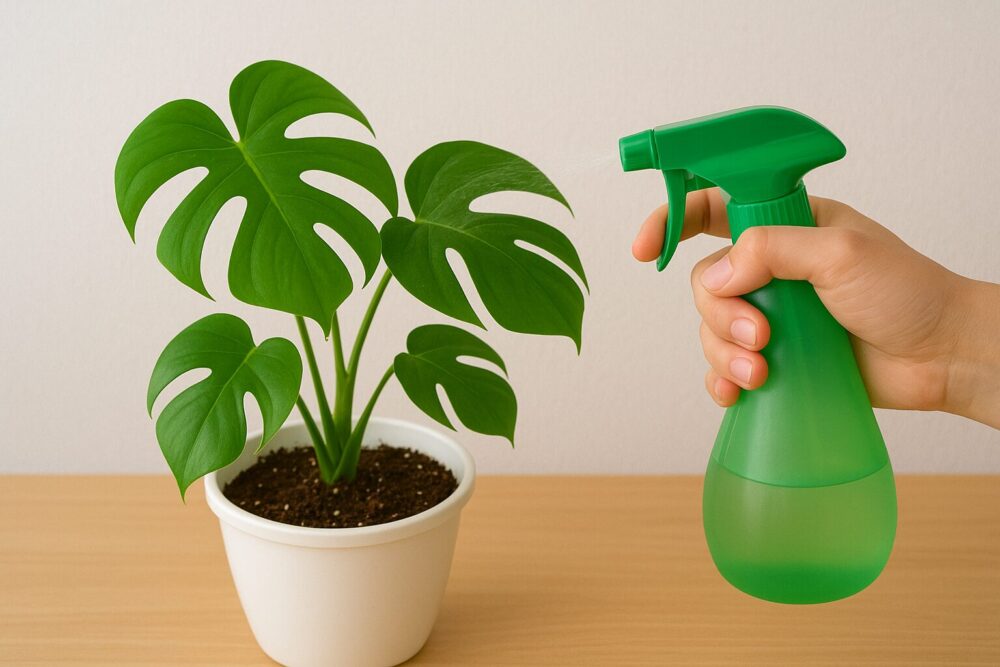 🧠補足:特にエアコンのある部屋では湿度が30〜40%程度に下がることが多く、葉水で表面湿度を補うことが不可欠。