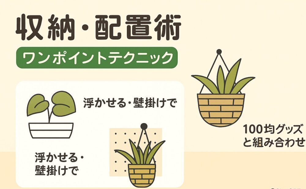 観葉植物は「どこに置くか」で印象が大きく変わります。特に賃貸やワンルームでは、限られたスペースをどう活かすかがポイント。ここでは、ダイソーのアイテムを活用しながら、すぐに実践できる配置術とワンポイントテクニックをご紹介します。