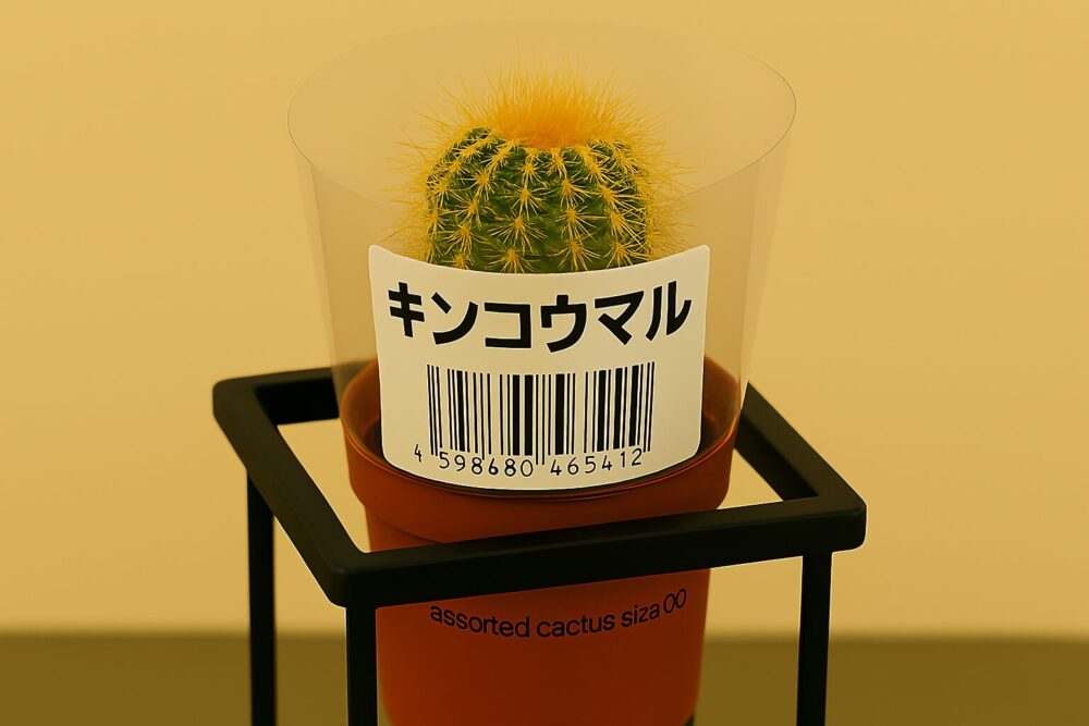 - キンセイマル:丸いフォルムに無数のトゲが放射状に広がる壮観な見た目。黄金色の細かいトゲが全体を覆い、光を受けて輝く美しさ。成長すると黄色い花を咲かせる華やかさ