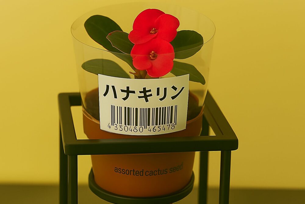 - ハナキリン:光沢のある楕円形の葉とトゲのある茎。鮮やかな赤やピンクの花が長く咲き続ける。「花が絶えない=縁起が良い」とされ、観賞用としても人気